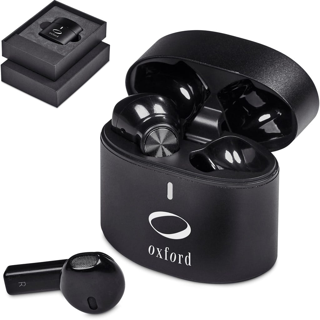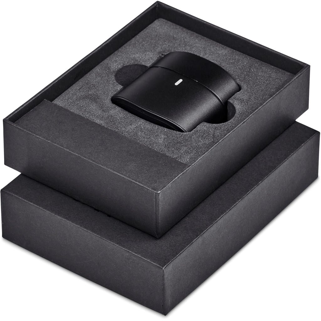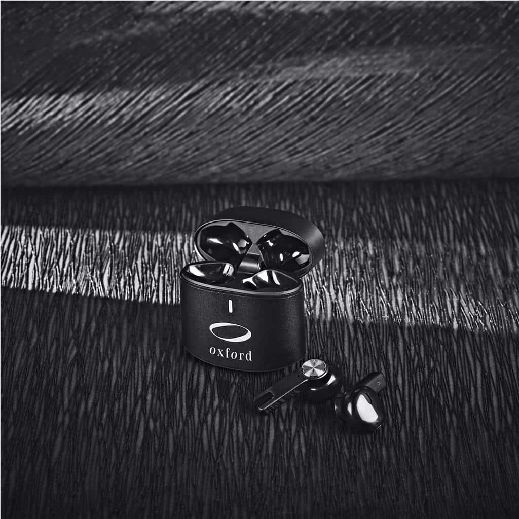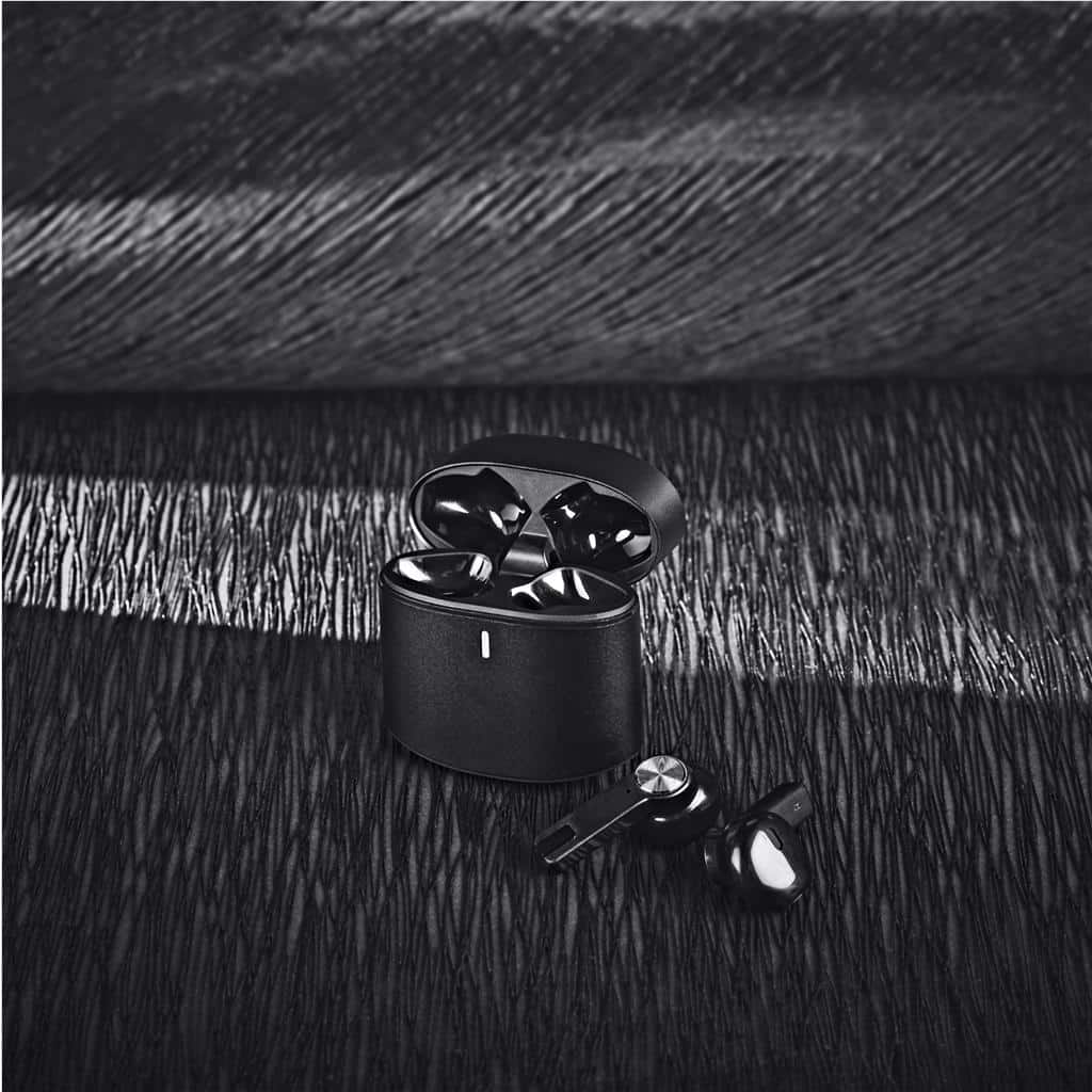 A compact set of True Wireless Stereo Earbuds in a strong and solid metal case. The earbuds provide crisp and clear sound quality, and the microphone picks up your voice clearly when you’re on a call.