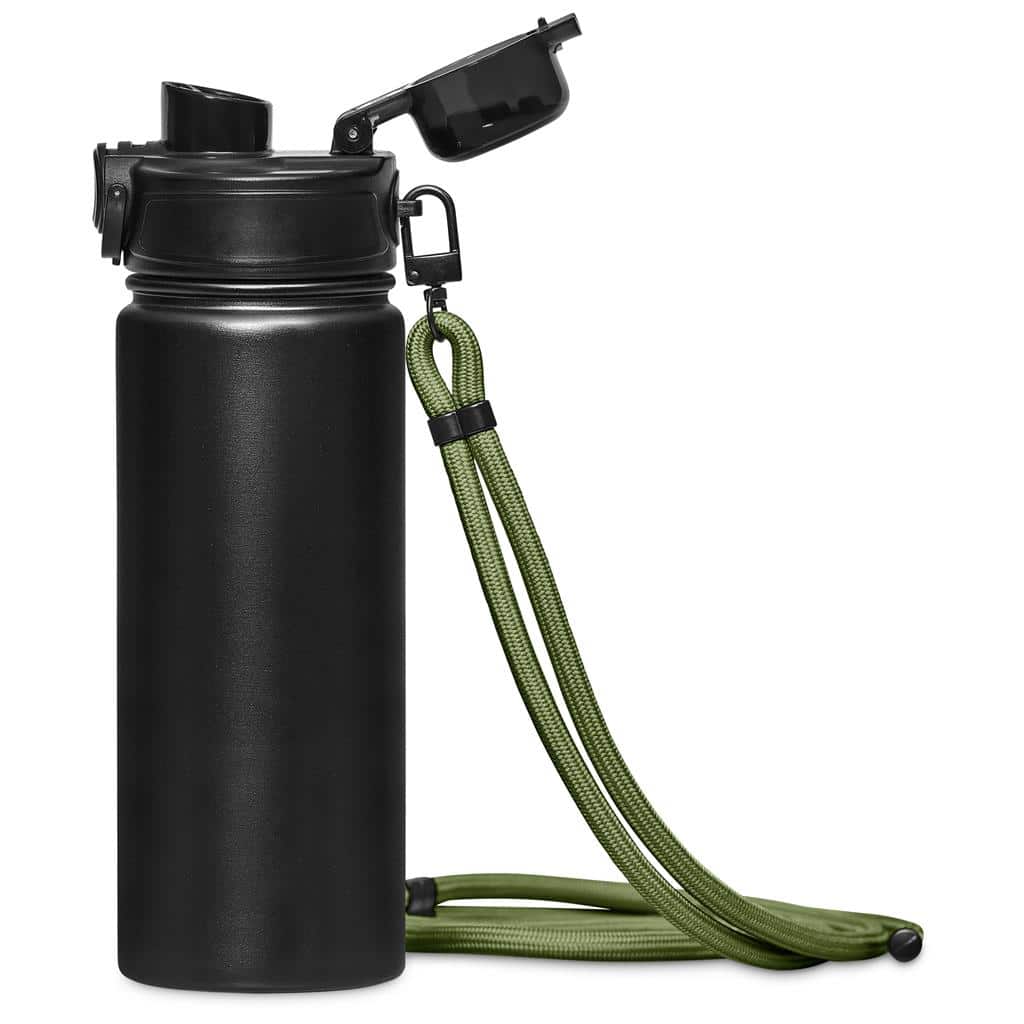 The bottle base is made from strong and durable BPA-free stainless steel with a black powder-coated finish.