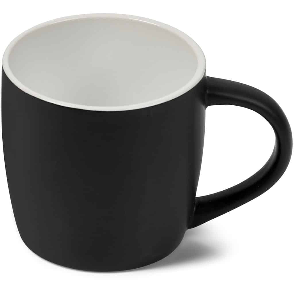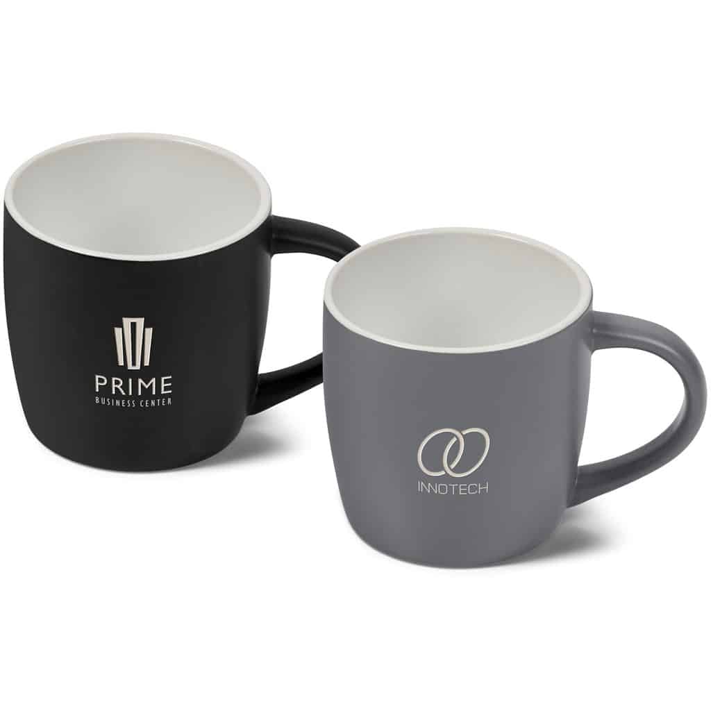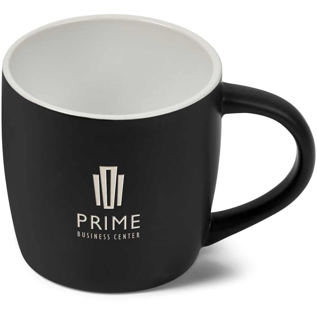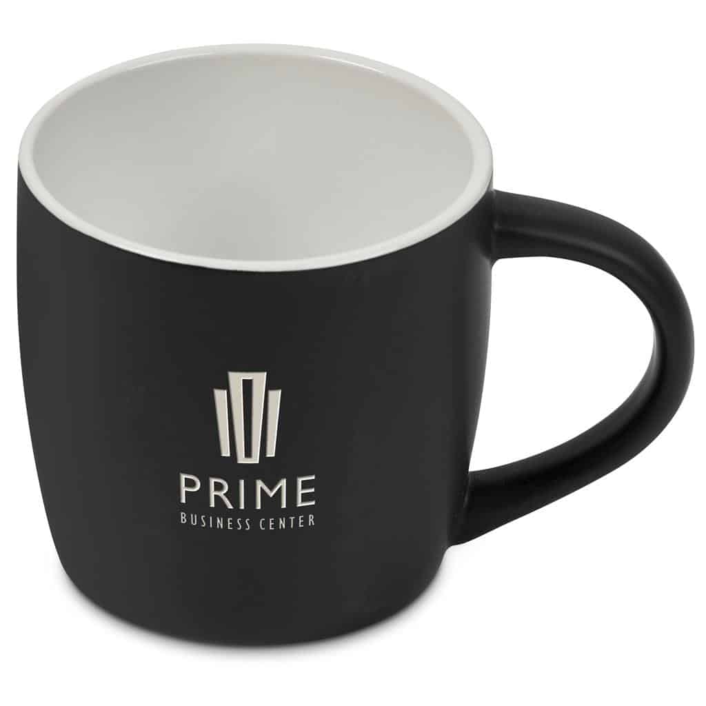 The upmarket matte finish on this 280ml coffee mug gives it a warm feeling. Laser Engraving removes the black surface to reveal the ceramic below. This is a subtle, elegant branding method and provides longevity for the logo or message being branded, as it will never come off or fade away.